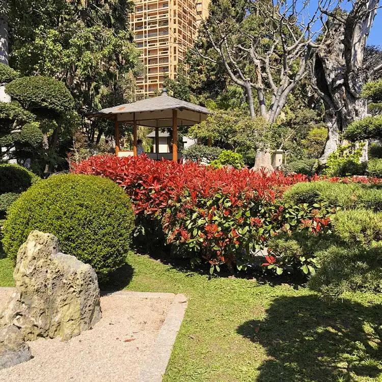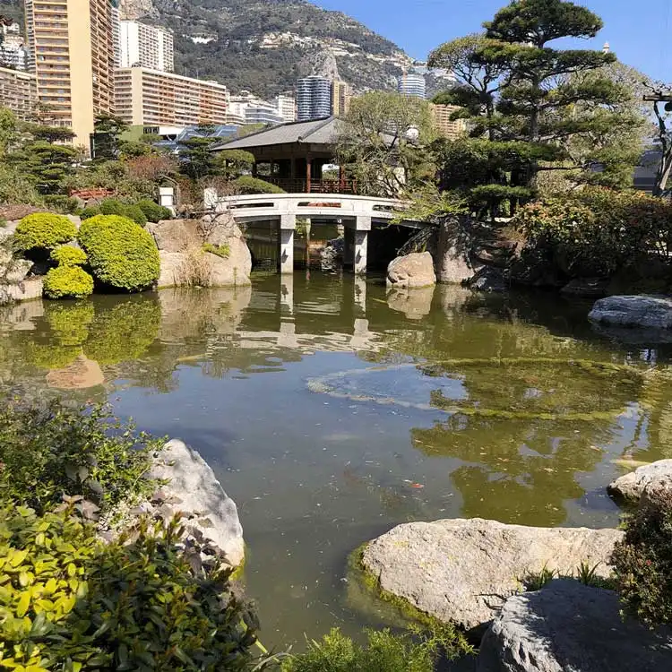 Depuis le pont contré rouge (shintoïstes) au jardin zen(bouddhisme), ce jardin a été aménagé selon les souhaits de la princesse Grace, devenant un véritable oasis de verdure, il regorge de nombreux symboles et offre un voyage dépaysant au pays du soleil levant, au sein même de la Principauté.