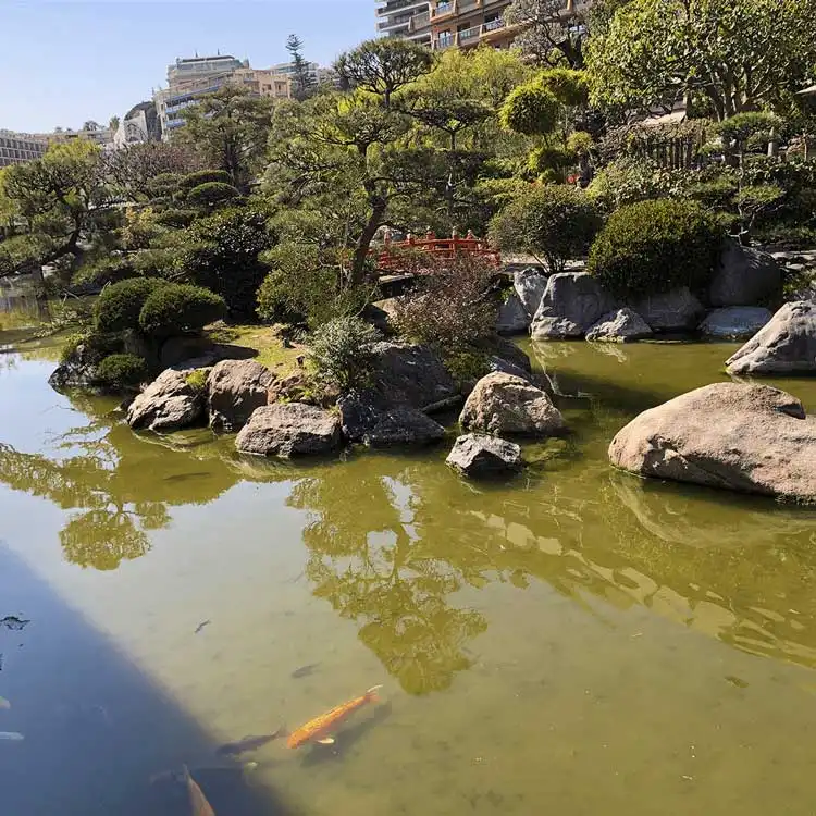 Cet écrin de verdure où règne une atmosphère particulière alliant harmonieusement la pierre, l'eau et la végétation, est un riche mélange de traditions japonaises et d’éléments méditerranéens, résultat d’une étroite collaboration entre les jardiniers de Monaco et ceux du Japon.