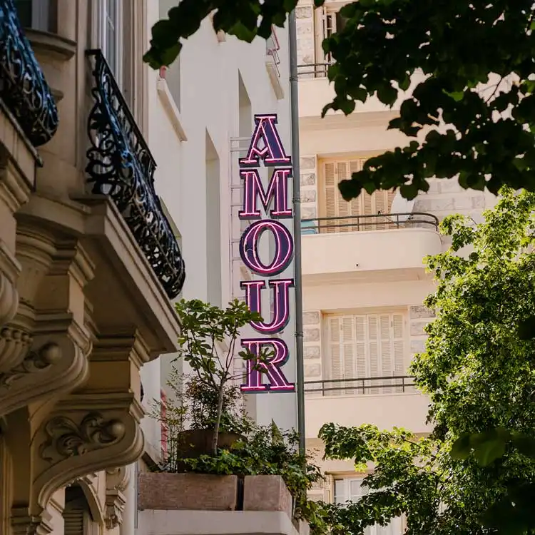 Proche de la Promenade des Anglais, l'hôtel Amour de Nice est un havre de paix en plein quartier des Orangers. Une Taverna grecque en guise de restaurant, avec un patio très lumineux. Des décorations faite à partir de meubles et d'objets collectionnés au fil des années. Au 7ème étage de l'hôtel, un rooftop, ouvert de mai à septembre, avec une vue à 360° sur Nice. Dans des tons roses, bleus ou crème, les chambres vous invitent au repos et à la relaxation. Besoin de vacances, pour un week-end ou bien un séjour en famille…