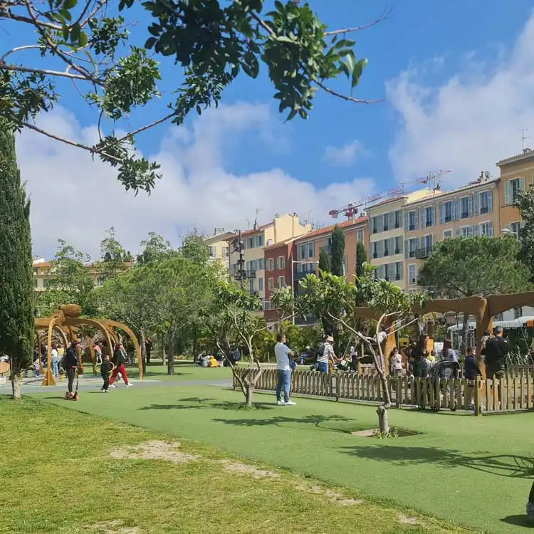 Retrouvez, en plein cœur de ville, un espace d’environ 1,3 km de long sur plus de 50 mètres de large, en partant du haut depuis le Musée d’Art Moderne (Mamac) jusqu’au bord de mer.