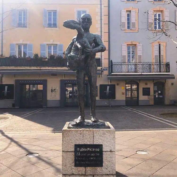 Cette statue est installée sur une petite place accessible à pied et en voiture à Vallauris.